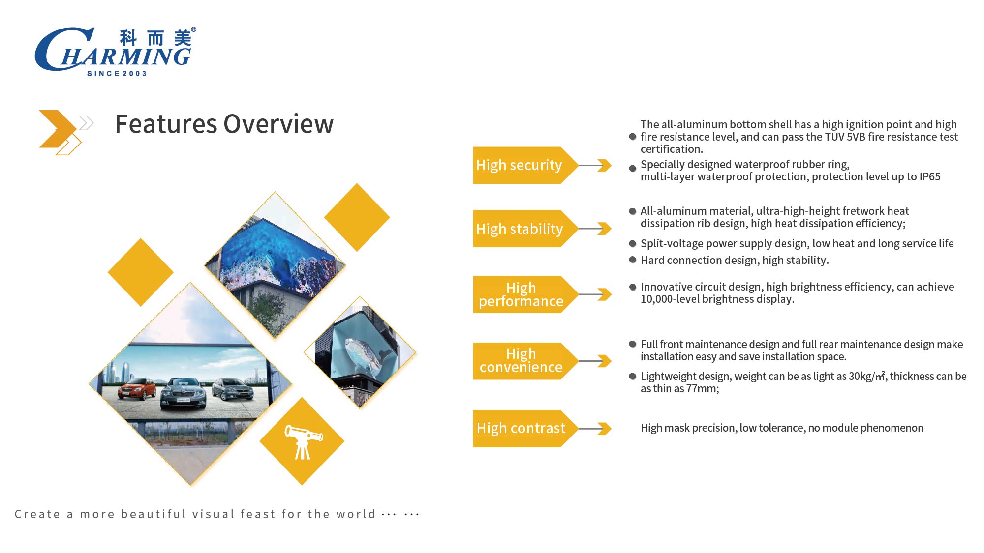 1. Full aluminum base shell with high ignition point and high fire resistance rating, capable of passing the TUV 5VB fire test certification