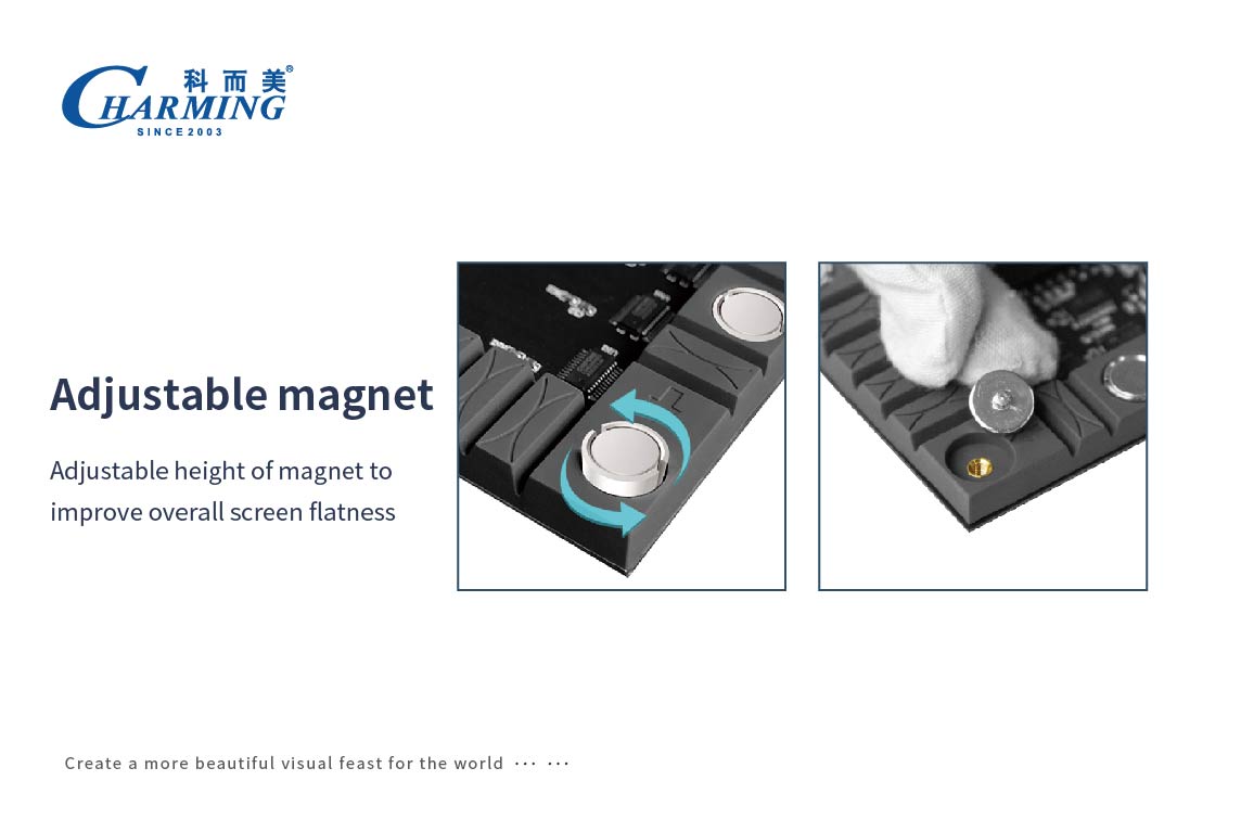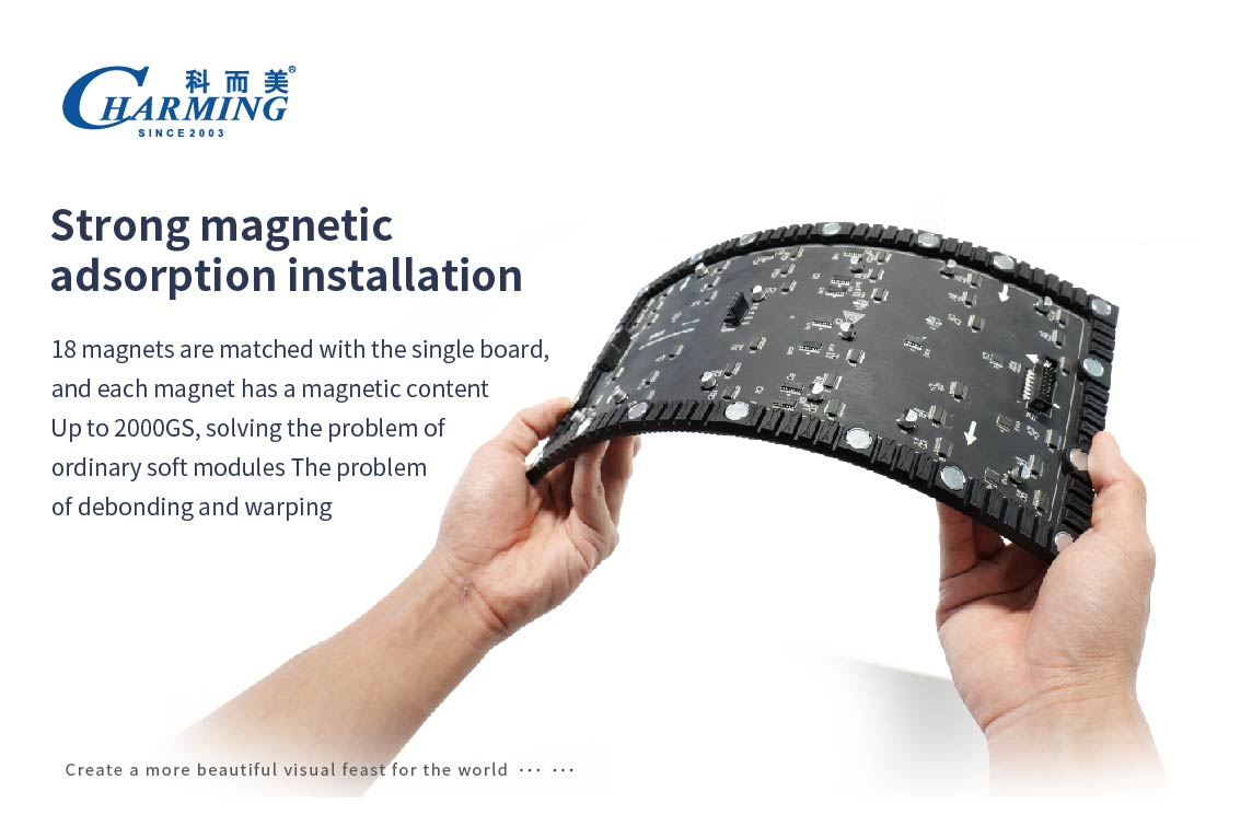 2. Strong magnetic adsorption installation, with 18 magnets provided for each single board. Each magnet has a magnetic intensity of 2000GS, effectively addressing the issues of adhesive detachment and warping in conventional soft modules